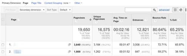 Notice the difference for this particular website in terms of bounce and exit rates for returning visitors compared to new visitors.