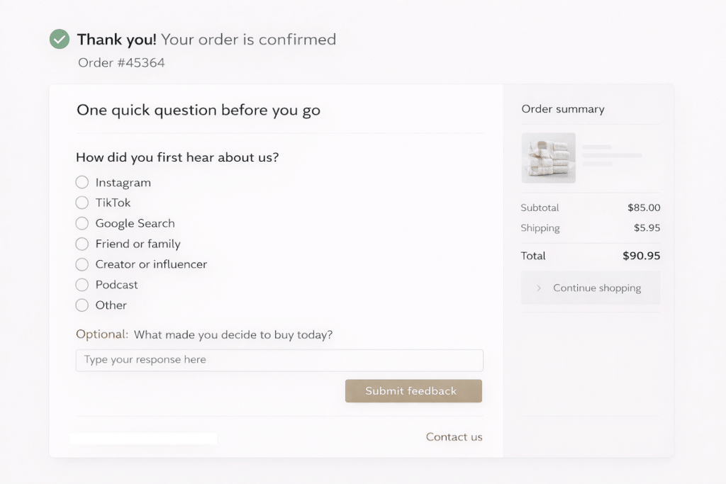 Once someone has bought, you have a short window where their motivation is still fresh. That makes post-purchase surveys one of the best ways to learn what actually convinced them to buy, which channel influenced them first, and what nearly lost the sale.