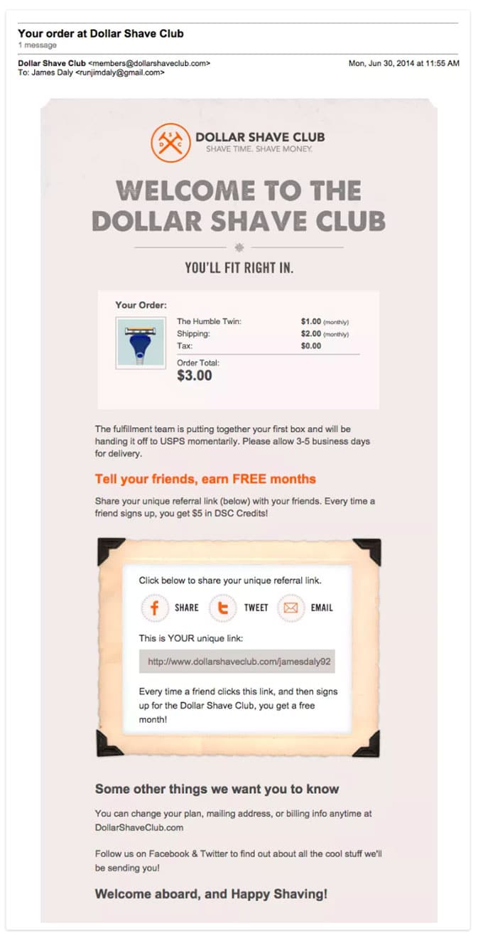 Shopify not only welcomes new customers but also shares important links and resources to help them get started. This creates a positive and personalized first impression.